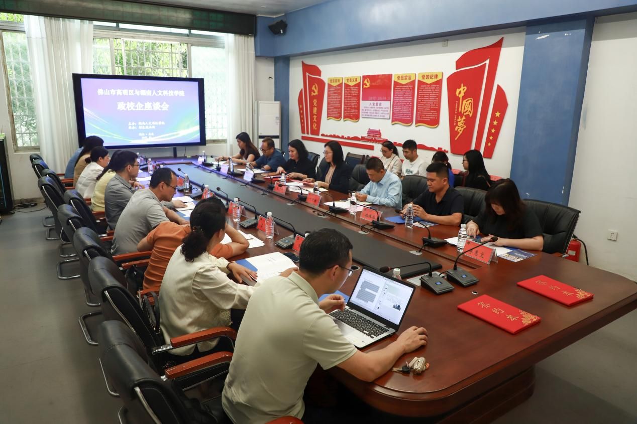 座谈会上,谭峰亮对高明区人社局领导及企业代表表示欢迎,并详细介绍学校发展历程、学科特色及产学研成果。他强调,学校始终以“服务地方经济”为使命,与华菱钢铁、三一重工等500余家企业建立深度合作,开设6个行业冠名班,精准培养应用型人才。谭峰亮表示,此次合作将围绕“协同育人、科研攻关、就业对接”三大方向,通过校企联合培养模式推动教学链与产业链深度融合,促进毕业生高质量就业,同步服务高明区产业升级需求。