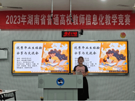 随后是应邀参与经验交流的6位优秀毕业生代表的发言环节。戴惠杰同学率先分享了公务员考试时间和相关事项,以提问的形式,讲解了考公题型并建议同学们提前规划、树立目标。宋鑫同学鼓励同学们积极参加校院各项活动,提升自身素养。周芷伊同学以自身经历进行分享,建议同学们早做人生规划并保持良好的人际关系,积极和老师沟通。徐珺晗同学分享了自己考研的目的,强调了考研择校和英语四六级的重要性。邹凤同学依据自身的考试时间线,分享了考研时间安排,同时也分享了学科语文专业的相关知识,建议同学们通过多种渠道获取信息,打破信息差。