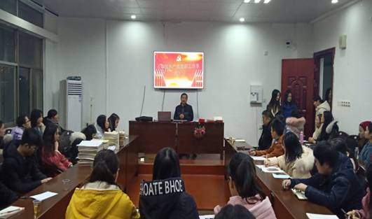2018年12月26日20:30分,在致远楼213会议室,文学院党总支开展学习《中国共产党工作条例》,会议由党总支书记肖军凡、党支部书记牛津老师和左玉洁老师组织。