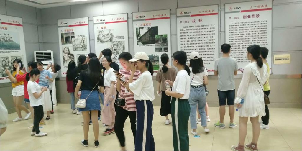 讲座结束后,按照事先的安排,文学院秘书学专业师生先后参观了五江集团的搪瓷厂、保温瓶厂、天华牧业和天华食品有限公司,实地考察了企业发展的环境。最后一战,师生参观三一重工的创业教育基地。曾经荣膺全国首富的三一重工总裁梁稳根先生的出生地就是茅塘镇的石门村,这里是他的创业起点。当年四位大学生的创业之举,成就了今日跻身世界500强的三一重工。在三一重工创业发展展览馆,师生们亲身见识了一个实业发展壮大的神话从诞生到成为现实的过程。这是一次最为直观真切的励志教育。了解了三一重工的发展史后,同学们瞬间明白了夯实专业基础、汲取知识养分、勇于创新发展、为梦想而不懈奋斗的重要性。
