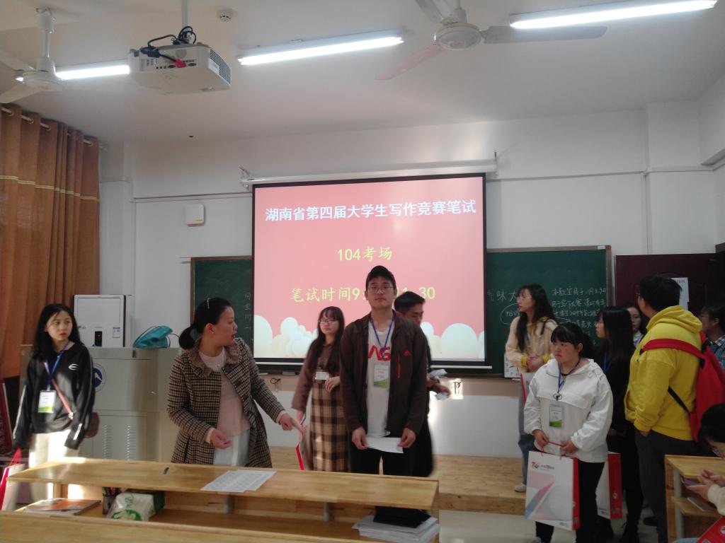 本届大学生写作竞赛由湖南省教育厅主办,湖南科技大学承办,全省28所高校32支代表队160位选手参加了角逐。在2019年11月9日上午的笔试中,钟宏超、王帅两位选手凭着过硬的文学理论功底入围一等奖,获得了决赛答辩的资格。在第二天上午的现场答辩中,两位选手从容应对妙语连珠表现优异,获得了评委老师的一致好评。最终,王帅获得一等奖,钟宏超获得二等奖第一名。