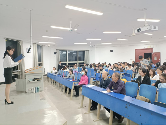 本场比赛由文学院院长倪正芳博士,副院长朱艳阳博士,秘书学专业负责人张峰副教授,《领导学》课程专任教师刘道锋博士以及《演讲与口才》课程专任教师李亚珍担任评委。同时,21级的新生们也满怀热情前来观赛,他们热烈的掌声是选手们激情演讲的动力。