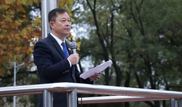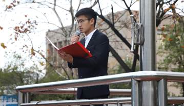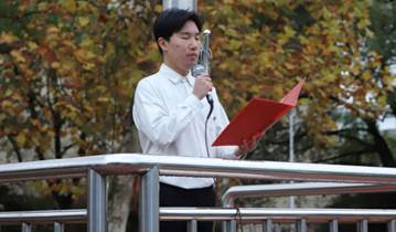 尹钟宏书记做了重要讲话。他指出,本次升旗仪式全体文学院学生参加,特别是新生参加,是一次特殊的迎新大会。他强调,2021年,是一个全新的年份,这一年,中国遇到百年未有之大变局,正在前所未有的走近世界舞台的中央,这一年,中国开始继续深化改革并平视世界,党的十九届六中全会召开,这一年,教育新发展理念带来新境界。这一年,文学院也迎来焕新出彩新气象,在学生管理、就业工作、学风建设、学科竞赛等方面取得了一系列工作成绩。最后,他还从学习、思考、锻炼、理想等方面送给学生十句话,希望同学们”风正扬帆,催鞭奋蹄,时不我待,开辟新的人生!”