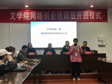 11月22日晚,文学院2021年第一期网络创业培训班结业仪式在致远楼213召开。