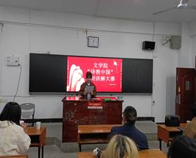 诗意中国,渊远流长,与时光作伴,听世纪回响。为更好地传承和弘扬中华传统文化、提高文学院学生综合实践能力,充分发挥KY官网作为湖南省语言文字推广基地的作用,文学院于4月16日在致远楼216举办第一届“诗教中国”诗词讲解大赛。文学院副院长朱艳阳、罗主宾,活动指导老师段湘怀、姜琳出席并担任评委,文学院19、20、21级40多位同学参加比赛,文学院团总支宣传部黄莹主持此次活动。