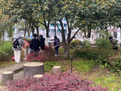 春意微寒,却挡不住同学们的热情。在学生党支部和团总支素拓部的组织下,大家仔细打扫每一块区域,对花坛里的落花、落叶进行清理,捡取白色垃圾,将垃圾进行清运,大家团结协作,通过劳动恢复了毓师园往日的美丽。