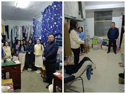 接着,各年级辅导员和各班班主任来到学生宿舍了解学生们的到校情况和生活情况,与学生们进行亲切交流。谈话过程中,老师们就不同年级学生的学习、生活等重点问题进行了了解和关心:对毕业年级学生的求职状态、求职技巧等进行了相应指导;对192021级学生上学期学习成效、新学期学习计划、时间管理等相关问题进行了答疑。每到一处,老师们都会给学生强调寝室用电安全、内务整理等事宜,对环境卫生较好、宿舍氛围活跃的宿舍进行表扬,对存在问题的寝室提出了整改建议。