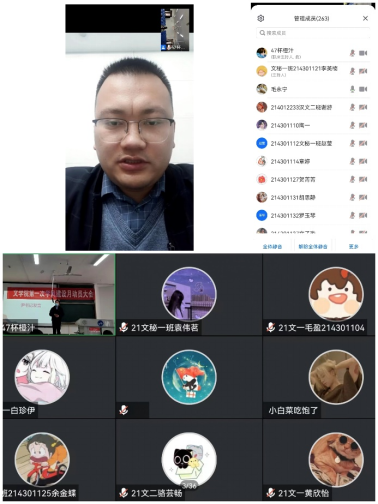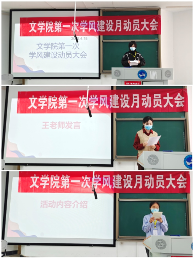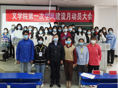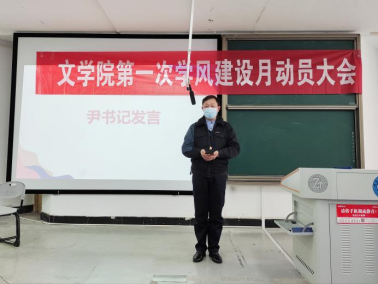 为积极响应学校学风建设号召,文学院于4月18日中午在致远楼220教室召开文学院第一次学风建设动员大会,因为疫情防控原因,本次动员大会线上和线下同步开展。文学院党总支书记尹钟宏、副书记毛永宁,团总支书记王文静参会,学生会学习实践部全体成员,团总支办公室和宣传部部分代表,21级各班班长、团支书、学习委员线下参会,21级其他同学线上参会。文学院团总支办公室部长陈思琪主持本次大会。