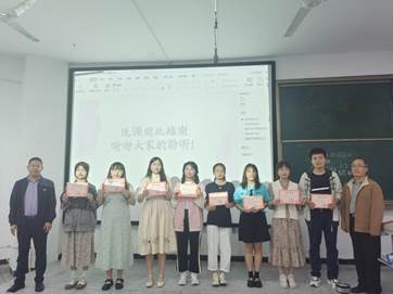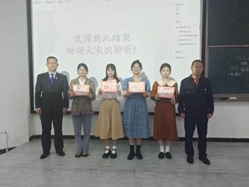 最终,经过激烈角逐,陆怡情、陈骏华、陈星翰,毛星宇同学的说课获得了本次比赛的一等奖,龚金圆、杨童迪、曾黄蕾、徐晓娴、易雪琪、曾一鸣、蔡青艳、吴桢8位同学获得了本次比赛的二等奖。比赛最后,评委老师们与各位参赛选手合影留念。