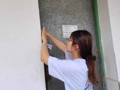 6月24日,在得知贴封条需要人手的消息后,叶子悦、陆怡情、罗玉琴、赵玉婷、张哲、谢游、彭慧娉、雷彩瑜、刘静、杨芝琪等11位留校参加“三下乡”志愿活动和准备学科竞赛的同学自愿报名,加入“贴封条”小分队。6月25日,在炎炎烈日下,同学们的身影穿梭于4栋、8栋、阳光公寓等包含19、20、21级的200余间宿舍,通过合理的分工高效完成了本次贴封条工作,为学院工作减轻了压力,贡献了力量。