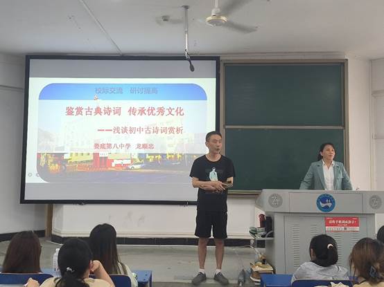 6月5日下午,娄底八中龙顺忠老师受邀莅临KY官网,在致远楼620教室为汉语言文学专业2022级学生做了主题为“鉴赏古典诗词,传承优秀文化”的中国古典诗词赏析教学讲座,王志谋老师主持本次讲座。