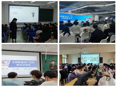 本着“走出去,请进来”的创新教育模式,请校内外专家给学生开设了内容不同的多场讲座。5月16日上午邀请了娄底短视频协会培训讲师周海玲为2020级和2021级网络与新媒体专业学生开设了“选择新经济共创新未来”的讲座,开拓了学生视野,吸引了同学们浓厚的兴趣。下午由网络与新媒体专业教师郭建鹏给同一班级学生主讲“主流新媒体产品的特点及变现”。5月17日上午邀请了湖南拓晟信息科技有限公司项目主管贺新奇为2019级网络与新媒体专业学生上了一堂主题为“PS中去水印、字体设计、换背景、精修图片”的实践教学课。