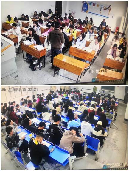 4月6日(周四)下午第5、6节课,倪正芳院长、罗主宾副院长同教务办人员及学生代表来到学校的教学监控中心进行线上巡查。在高清摄像头的拍摄下,214、211、220、306教室的课堂情况清晰可见。