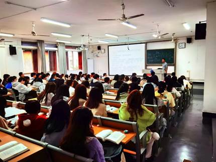 216教室由李璇老师上《中国古代文学(一)》课,汉文2022级3班应到63人,实到56人。虽然到课率不很理想,但来上课的特别是前排同学都非常专心,值得表扬。