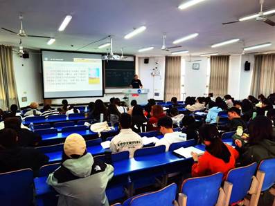 412教室是罗主宾老师上的《古代汉语(一)》课,汉文2022级2、4两个班应到100人,实到96人。罗老师在教室中间与同学们零距离互动,课堂效果出色。