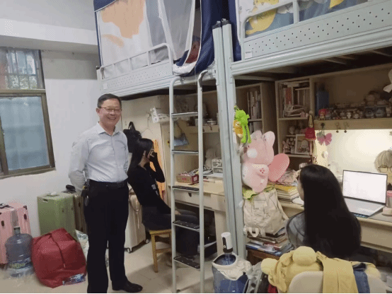 为进一步做好学生管理工作,营造洁净舒适的生活环境,5月31日,党总支书记尹钟宏,辅导员王文静老师、唐久乐老师,胡艳老师一同走进23级部分寝室,开展了每月下寝活动。