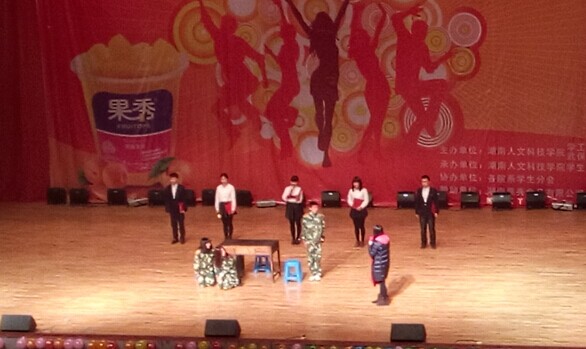 接踵而至的是各个系的精彩演出:音乐系的乐器合奏、政法系、教育系、数计系、信工系共同倾力打造的歌曲串烧、能机系、政法系令人爆笑的舞蹈串烧、经管系的啦啦操、农生院和化学系的手语歌、外语系热辣的爵士舞,校学生会的话剧都让观众惊喜连连,掌声绵绵。我系带来的朗诵——《中国人,不跪的人》配之以高亢的音乐,加之以中文学子高昂的情怀彰显中国自古以来不屈的民族精神,让在场的领导与观众称赞。