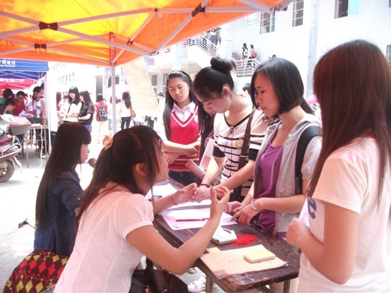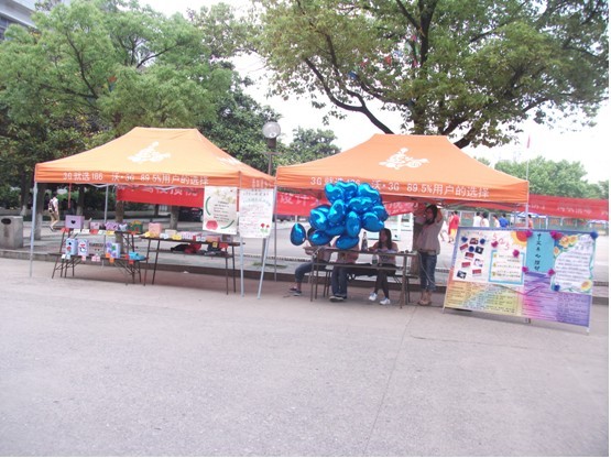 17日中午,系心理部干事在一食堂前摆点,悬挂海报,布置展板等宣传5.25大学生心理健康节,展示由各年级各班制作的心灵盒子,并组织同学们报名参加以“让我们的心事上天入地”为主题的特色活动。