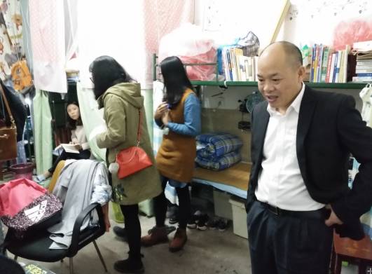 老师们一间一间叮嘱,号召同学们积极参与到学校全体师生群策群力,全面做好“创文”工作中来,对寝室内务要求做了具体要求,对于晚归寝情况也再三强调,包括出行安全,门窗反锁是否到位,对学生的关怀体贴入微。同时,领导老师们还亲切的询问现在同学们的生活情况,并记录一些同学们提出的问题和困惑,悉心指导,耐心解答。天气转凉,在做好保暖的同时还特别针对严禁使用大功率电器、取暖设备等做了特别强调。