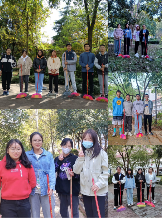 同学们相约在毓师园,带上各种打扫工具,抖抖身上的尘土,在欢笑声中开始了打扫。