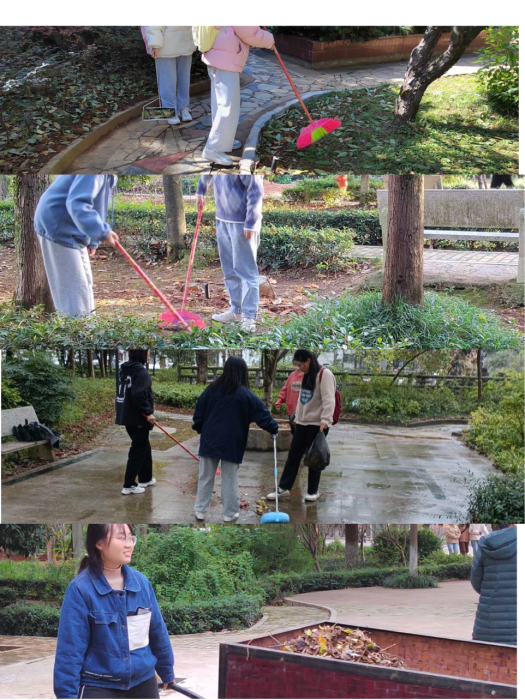 同学们扫走一片片白色垃圾,一处处枯枝落叶。让每一条小道不再泥泞,让每一棵草木茁壮成长,使得毓师园变得更加干净而美丽。