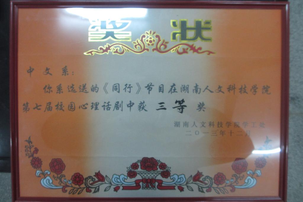 本次心理剧汇演是通过舞台表演的形式,把同学们在学习生活中遇到的心理困惑,通过自编、自导、自演,来给其他同学带来启发,促进了大学生心理的健康发展。如政法系《抉择》通过演绎同学们面临问题的不同抉择来展现内心的矛盾;中文系《同行》幽默风趣又贴近生活。整场晚会在不断的欢笑与感动中落下帷幕。最终,由教育系选送的《谁的青春不迷茫》荣获一等奖。中文系的《同行》获得了三等奖。