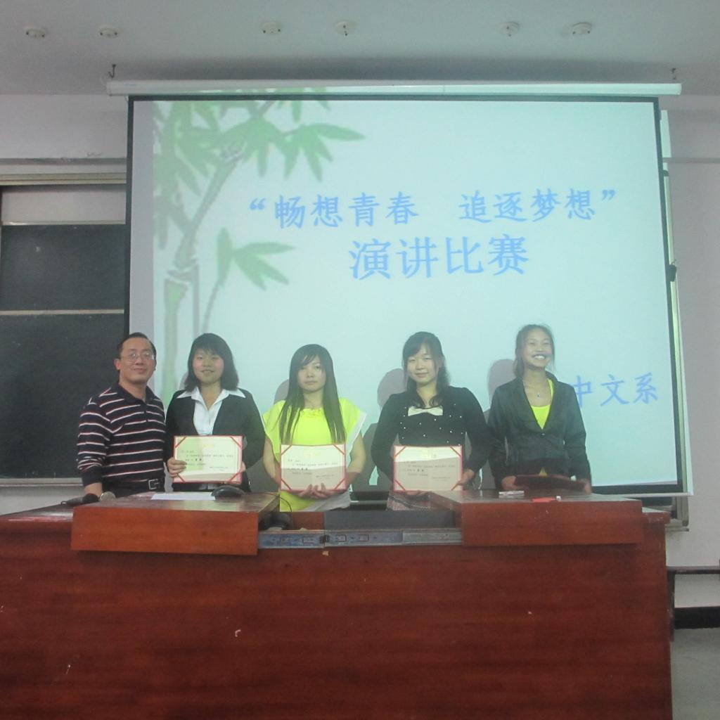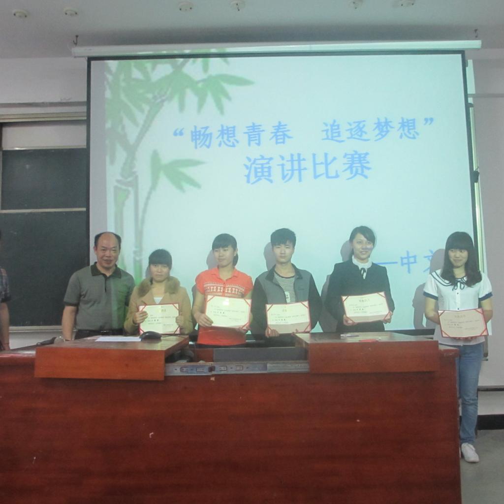 2013年5月8日晚上7:40,中文系主办的“畅想青春,追逐梦想”演讲比赛在致远楼219教室拉开帷幕。经过中文系2012级各班两个星期的准备和选拔,最终有14位选手进入决赛环节,他们将在当晚的比赛中一较高下。此次到场的评委有:中文系副主任王向阳教授、党总支副书记刘道锋博士、汉语教研室罗明镜老师、姜珍婷老师、吴晓燕老师、李亚珍老师和牛津老师。