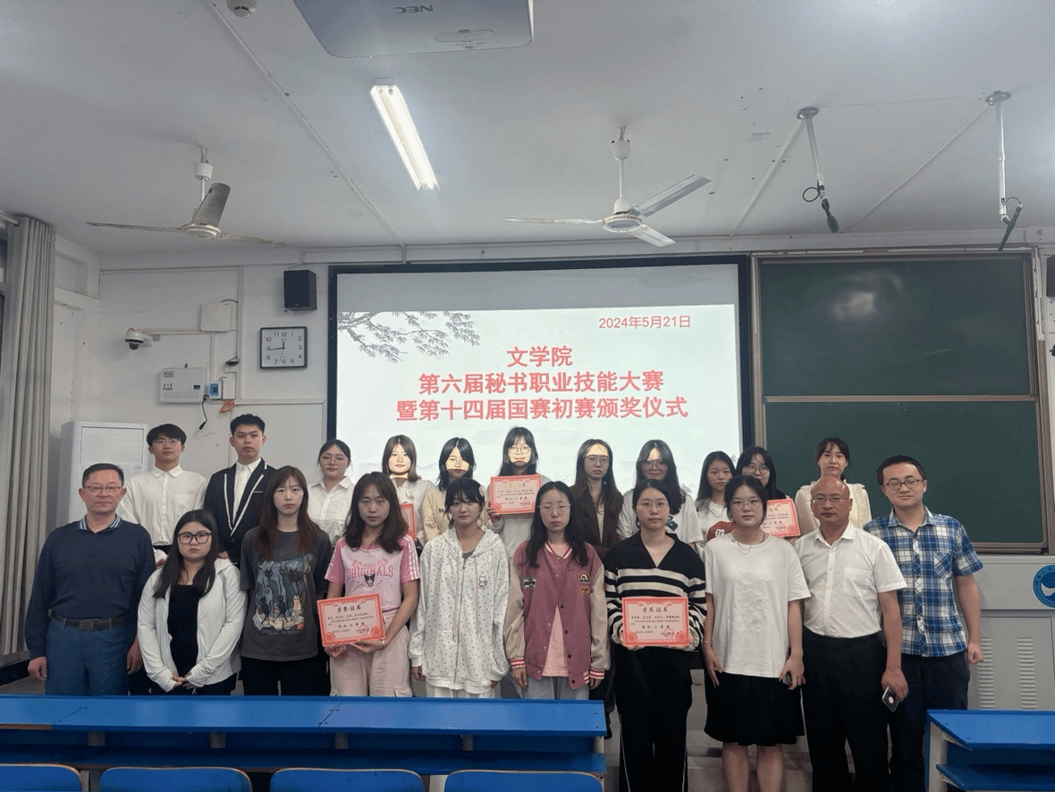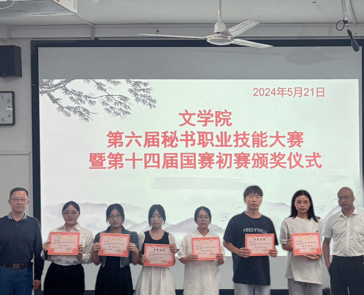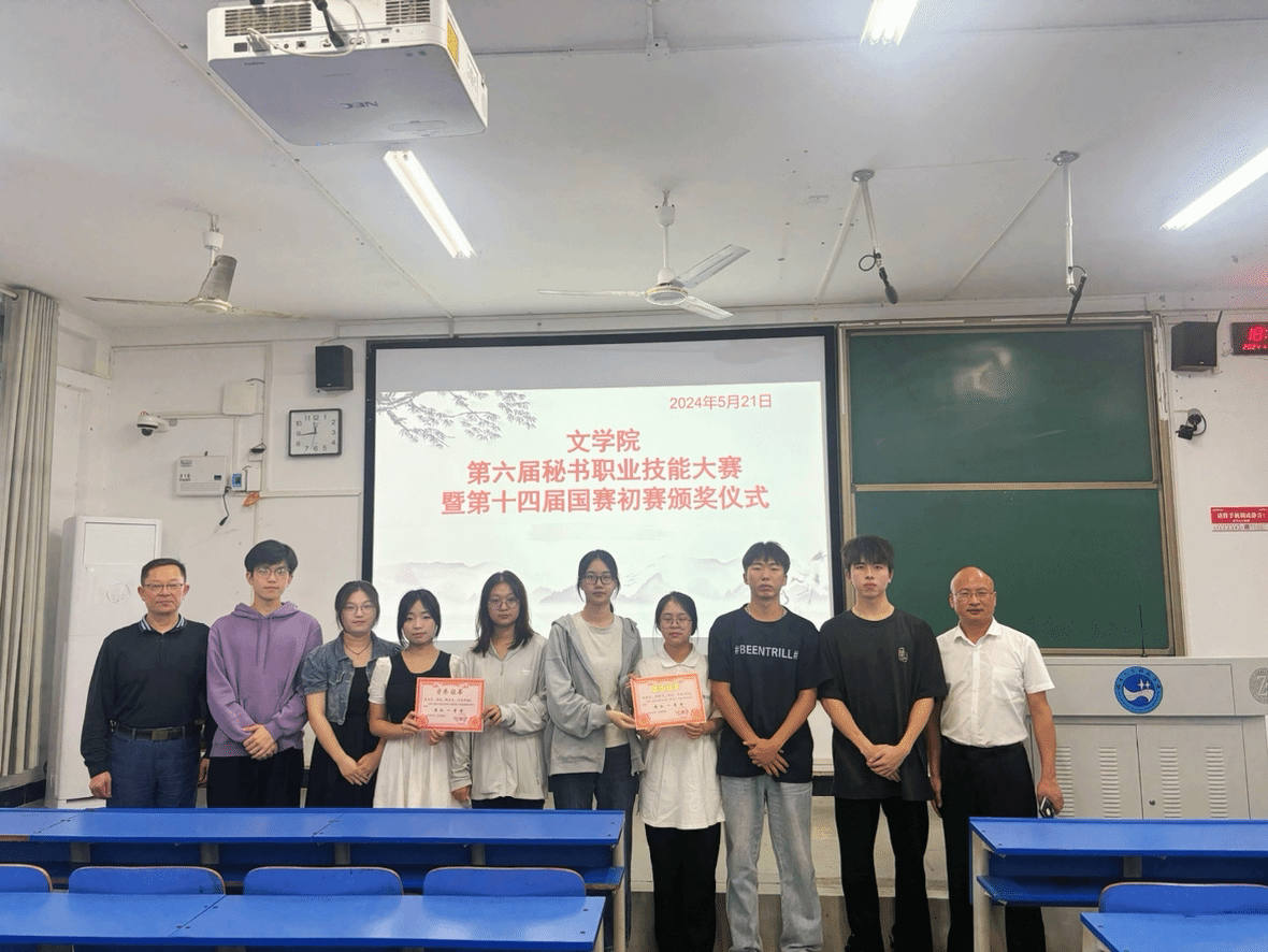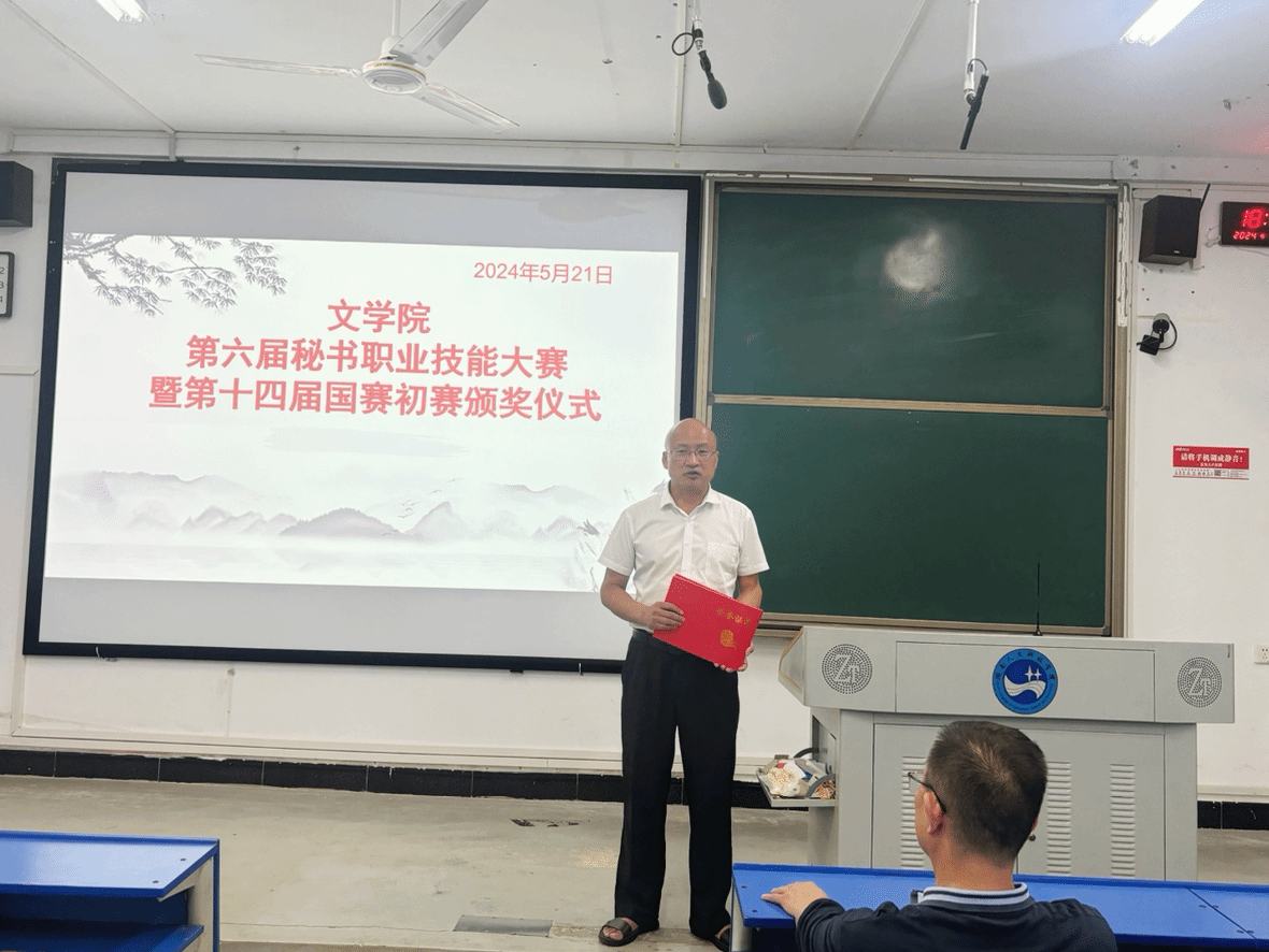 2024年5月21日晚18:40,文学院第六届秘书职业技能大赛暨第十四届秘书国赛初赛颁奖仪式在致远楼211成功举办。文学院党支部书记尹钟宏出席本次活动,并为获奖者颁奖。参加仪式的学生共31人,主要为22级秘书学专业的学生,仪式由文学院秘书学专业负责人张峰老师主持。