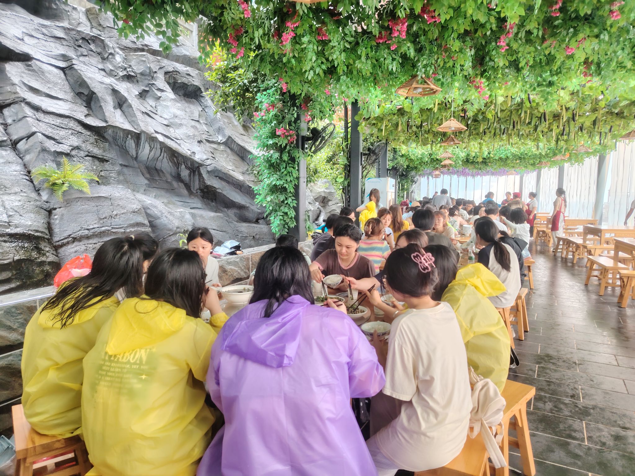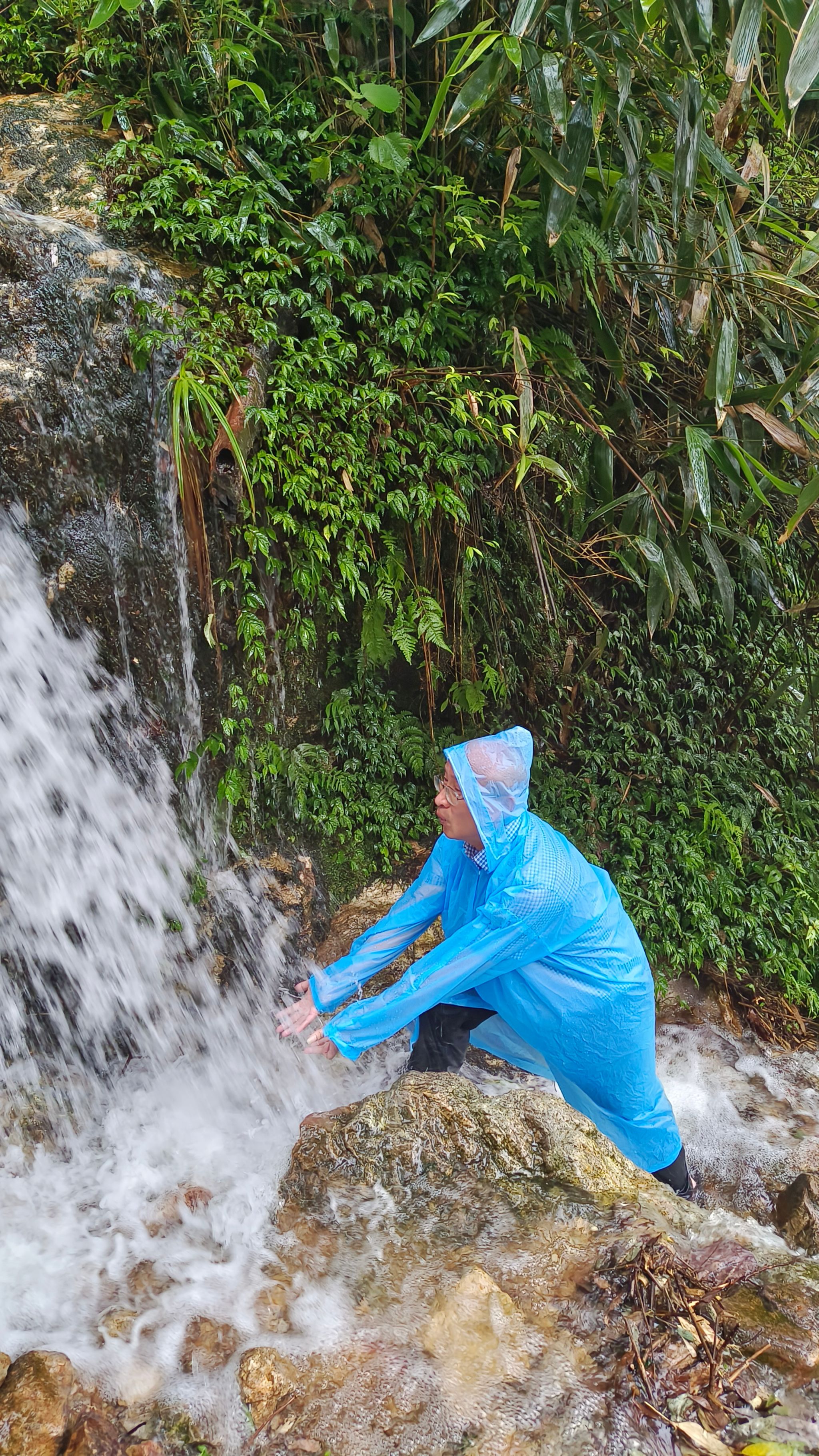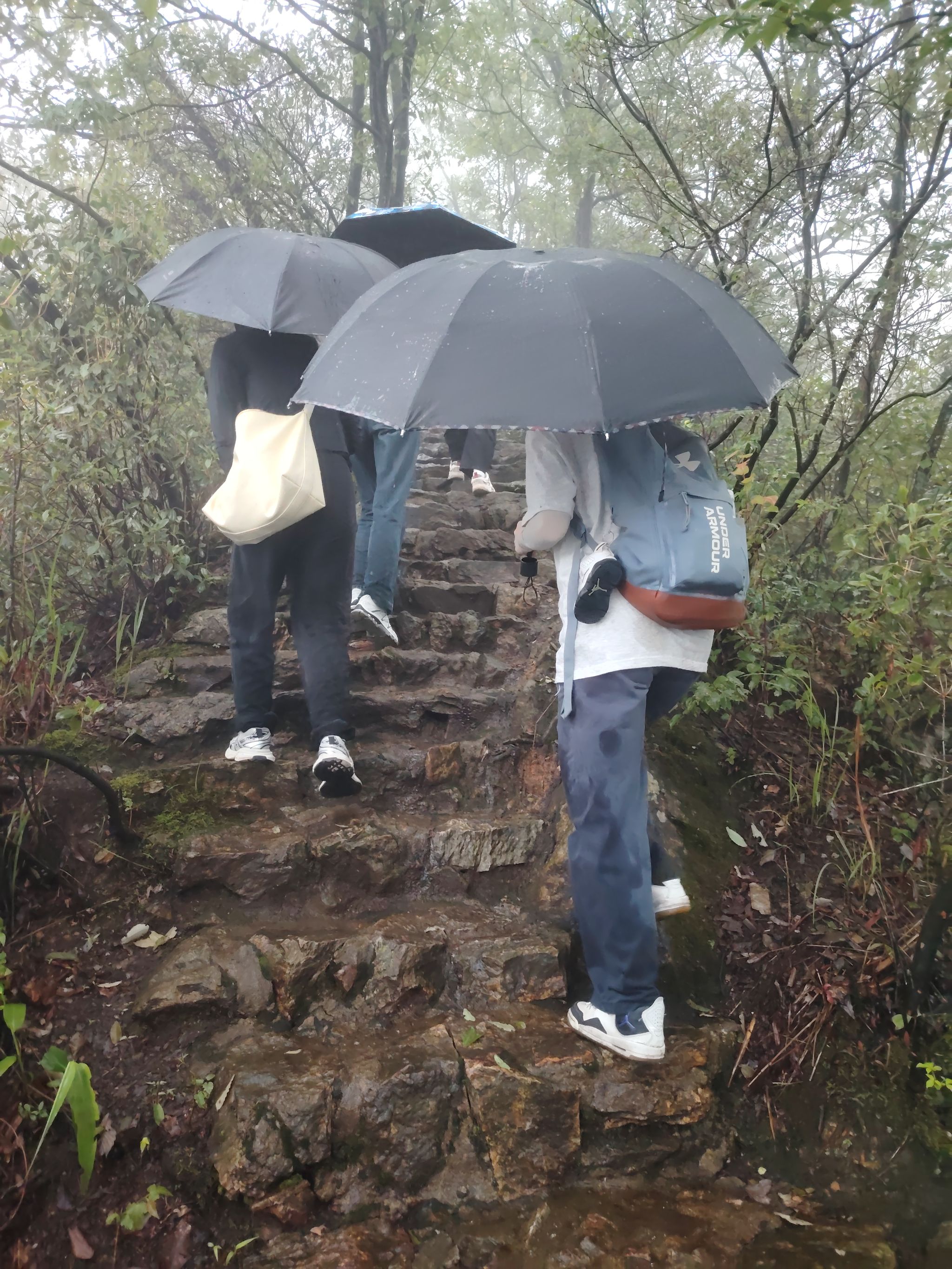 中餐过后,同学们来不及休息,继续冒雨考察下行的冰泉谷景点。此时的冰泉谷,仍然是云雾升腾弥漫,宛然一片朦胧的仙境。雨雾的加持,给三联洞披上了一层神秘的面纱,让人沉醉其中。师生们在大雾中观景,仿佛置身于一幅水墨画中,尽情感受着大自然的神奇魅力。冰泉谷里水量格外充沛,处处都是跌水和激流,溪水奔腾咆哮,声势浩大,如虎啸似龙吟,让人心驰神往。