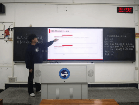 宣讲人深入剖析了师德师风的内涵,同时阐述了师德师风对于教师个人发展、社会风气的影响,极大地提升了学生对师德重要性的认识。此次活动还重点组织学生观看优秀教师张桂梅的典型事迹,展现了优秀教师对学生成长和教育事业的高度责任感。
