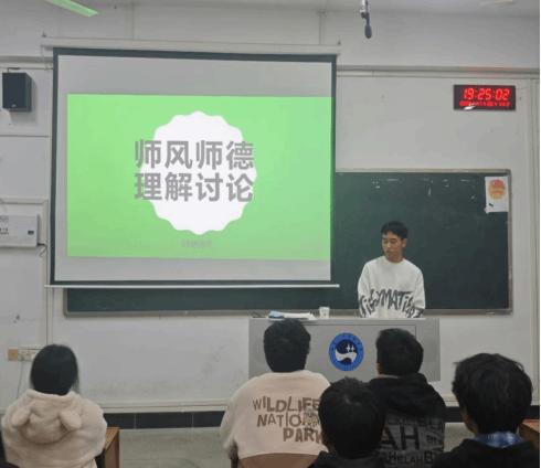 宣讲人着重强调了师德师风在教育事业中的核心地位,鼓励全体学生以此次讨论为契机,深刻反思、积极交流,共同探索教育的初心与使命。同学们围绕如何在日常教学中践行师德师风怎样以良好的师德形象影响学生等主题展开了热烈讨论。在讨论过程中,同学们分享了自己在师德师风建设方面的心得,同时对师德师风建设的现状与困难进行了探讨。