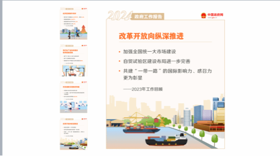 本次党课由学生一支部齐玉姣同志担任主持人,就“2023年工作回顾”、“今年主要预期目标”、“今年部分重点工作”、“2024年政府工作十大报告”、“学习领会习近平总书记两会重要指示”以及“九个新视角读懂政府工作报告里的未来机遇”六个方面展开分析解读。