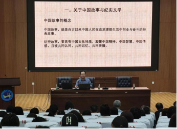 李春雷老师做了《中国故事与报告文学》。在为期三个小时的讲座中,李春雷老师从专业视角出发,结合自身个人文学经历及创作感受,以报告文学中的经典作品为例,追溯历史史实,系统诠释了纪实文学的发展脉络及历史贡献,并深入浅出地为师生们讲述了中国故事的五大类别,分析了什么是报告文学、如何写好报告文学等一系列问题。