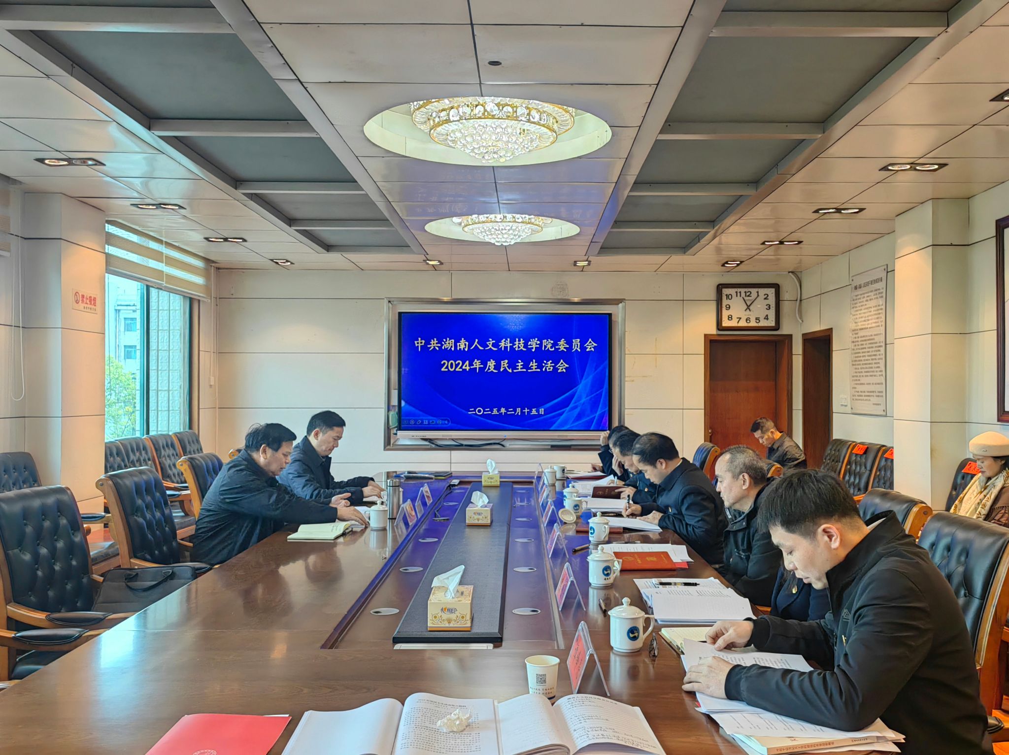 2月15日上午,校党委班子在明德楼第一会议室召开2024年度民主生活会。省教育厅一级巡视员王玉清、省教育厅校外教育培训监管处处长刘阳科到会指导。会议由党委副书记、校长盛明科主持。