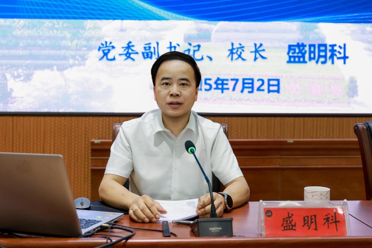 开班仪式后,盛明科以《强责任、转作风、严纪律、提效能——加强干部队伍建设推进学校高质量发展的几点思考》为题给培训班讲授第一课。他追溯了学校办学历史、分析了发展机遇及瓶颈,提出要以全面深化人事、干部、绩效、资源配置等综合改革为切入点,持续提升治理体系和治理能力现代化水平。他指出,学校发展要围绕“创新发展、内涵发展、特色发展、融合发展、安全发展”五位一体总体布局谋篇规划,着力加强干部治理和教师科研能力、办学综合实力和校园承载能力、内部治理效能、社会服务能力的提升。要举全校之力“申硕”、抓好本科教育教学评估问题整改、推进学校规章制度“废改立释”。他就扎实做好下半年学校各项工作提出六点要求:一是紧扣主线不偏离,二是深入一线解难题,三是真抓实干出成效,四是聚焦关键抓重点,五是心存敬畏守底线,六是提高站位担使命。盛明科强调,全校要凝聚思想共识,主动应变,科学谋划、大胆创新,加速赶超,进一步深化产教融合、创新创业教育、学科专业调整和特色优势产业学科培育,在教育强国建设中彰显学校担当,书写新的篇章。