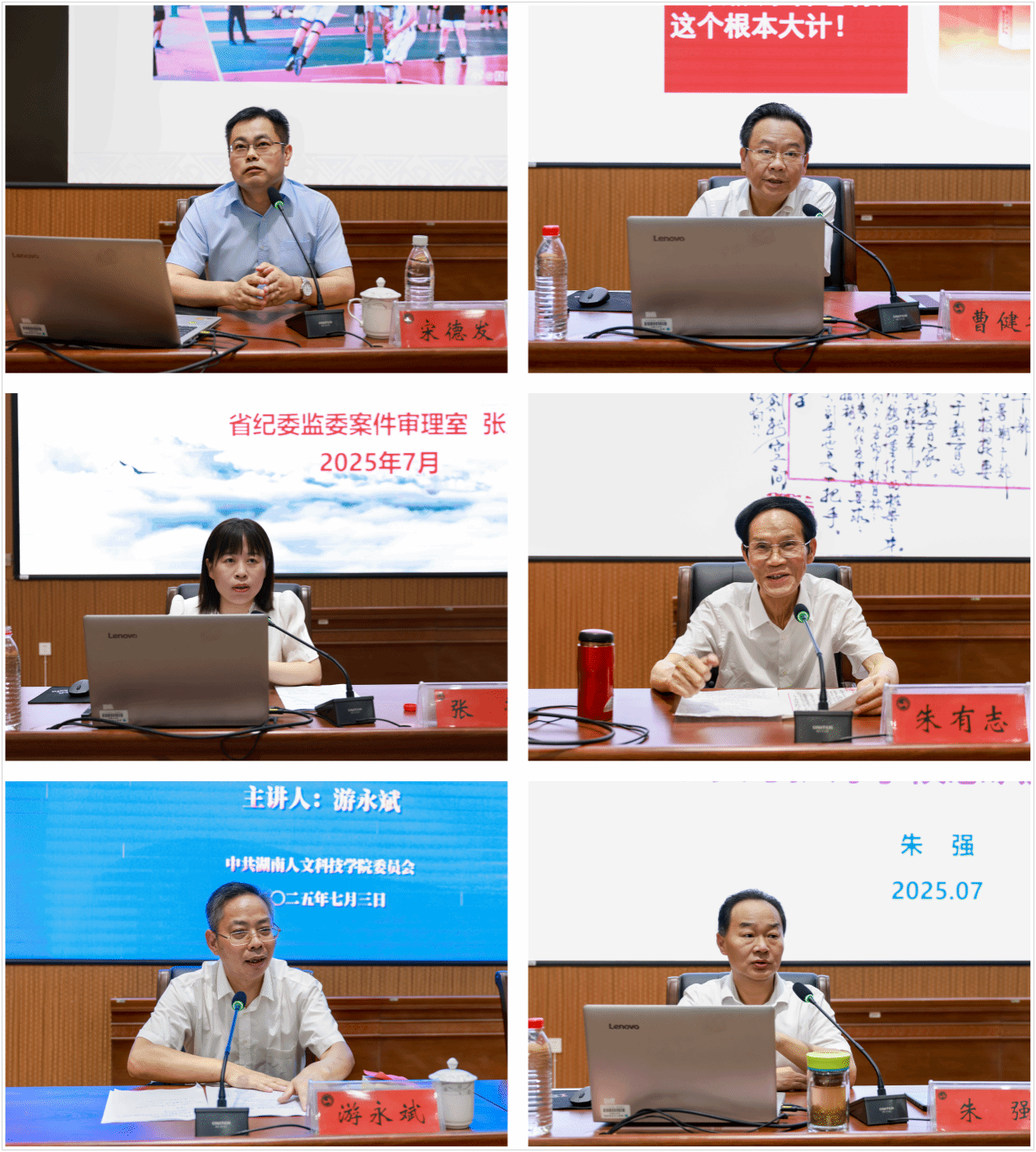 在全体集中培训阶段,湘潭大学文学与新闻学院副院长、博士生导师宋德发教授作《人美皆因读书多——兼谈领导干部的人文素养》专题讲座,他以幽默的语言阐述了领导干部多读书、读好书的重要性。省人大常委会委员、财政经济委员会副主任委员曹健华教授聚焦《做新时代奋发有为的好干部》主题,深入剖析新时代好干部的核心特质与成长路径,激励干部坚定理想信念、强化责任担当、永葆为民初心、勇于自我革新。省纪委监委审理室副主任、三级高级监察官张萱作题为《全面加强党的纪律建设,推进全面从严治党向纵深发展——新修订<中国共产党纪律处分条例>解读》的辅导报告,她通过案例式教学,让学员们清晰知道纪法底线,进一步提高纪律规矩意识。湖南省社会科学院原党组书记、院长,开慧村党支部书记朱有志作《如何做好一名新时代高校领导干部》主题讲座,他谆谆教导大家要认真学习体悟习近平总书记关于教育的重要论述,立志成为新时代的教育家。市政协文教卫体和文史委主任游永斌以《依法治校与干部法制素养提升》为题作讲座,引导大家深学笃行习近平法治思想,做学法、用法、守法的模范。集中授课后,全体校领导、中层处级干部开展了主题自学。