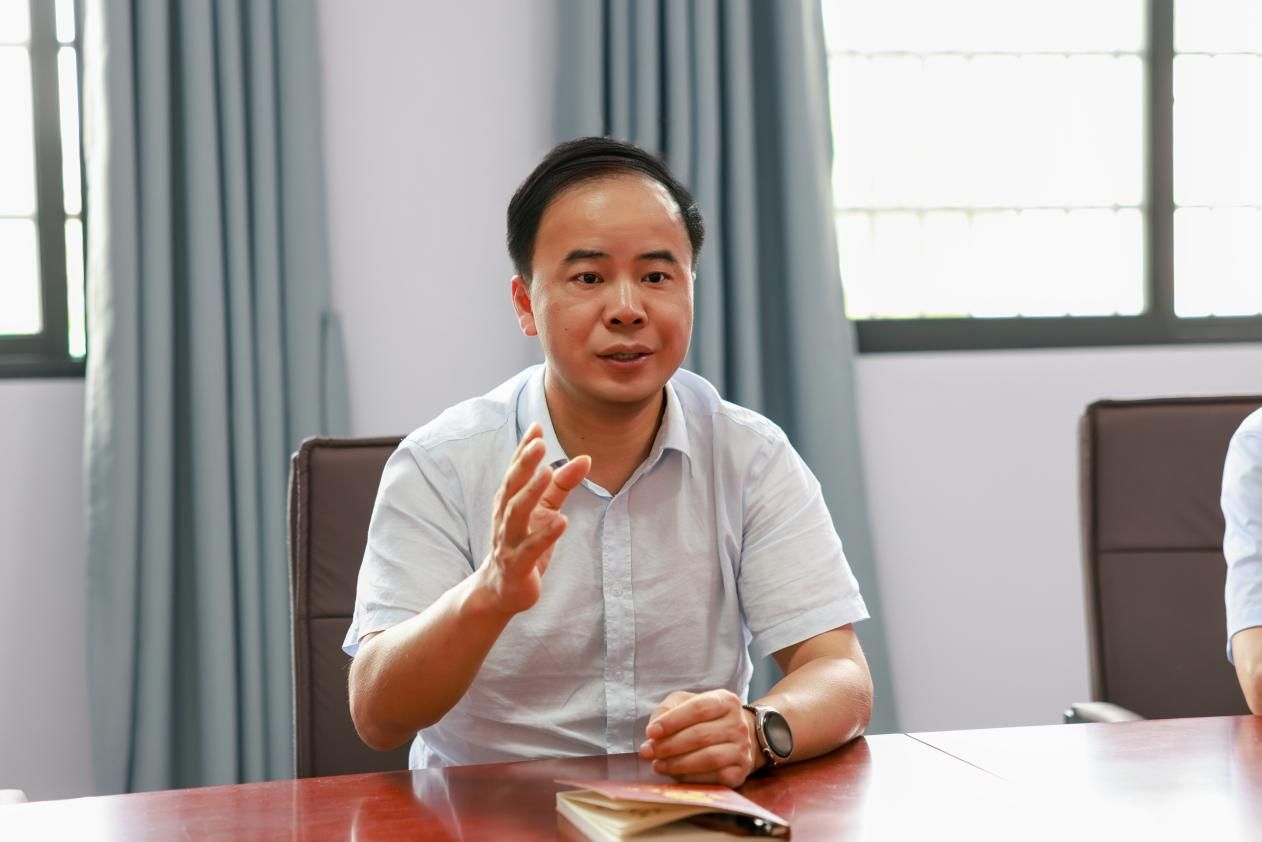 在新大桥村部,盛明科一行首先慰问了学校驻村工作队员,随后与工作队、村支两委及乡党委政府负责人座谈交流。村党支部书记余冬玉介绍了工作队驻村一个月来的工作进展、下半年计划及两年规划。朱炼红介绍了印塘乡产业发展情况,表示乡党委政府将继续强化组织保障,全力支持工作队履职;希望校地深化合作,聚焦产业发展关键领域,打造特色品牌,共同将新大桥村建设成为乡村振兴示范村。